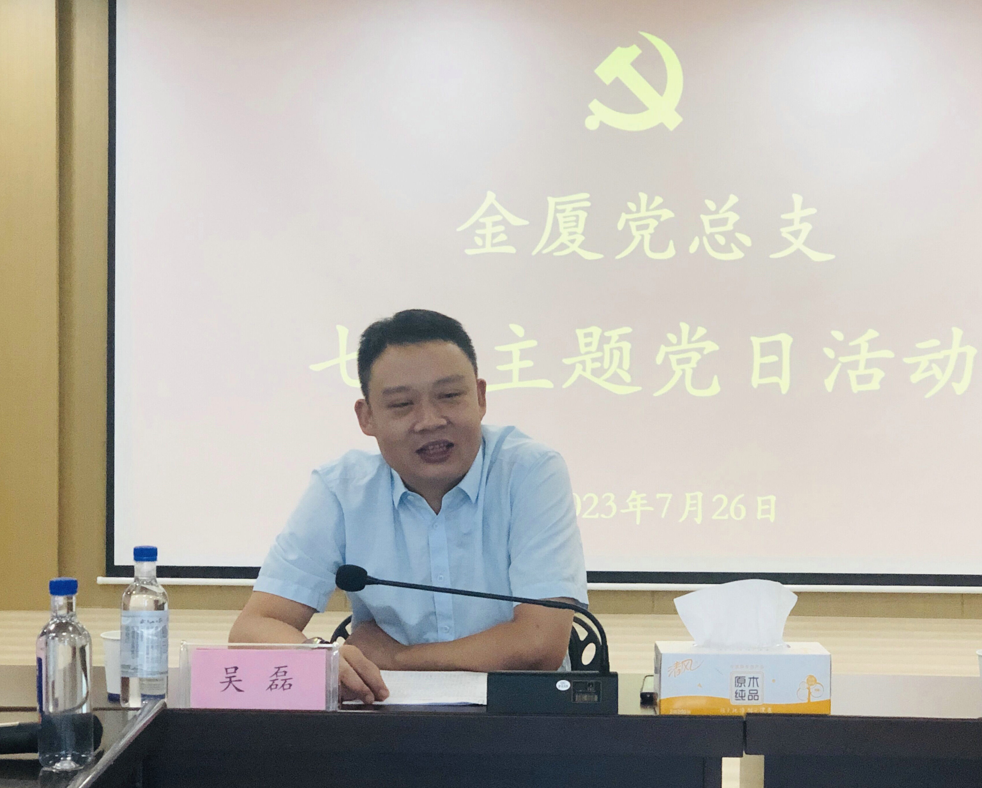 ? 為深入學(xué)習(xí)宣傳貫徹習(xí)近平新時代中國特色社會主義思想和黨的二十大精神,鞏固深化主題教育,激勵廣大黨員干部在新征程上擔(dān)當(dāng)實干,7月26日上午,金廈集團(tuán)黨總支部在集團(tuán)會議室開展7月主題黨日活動。集團(tuán)總裁、黨總支部書記傅融出席活動并為大家講授主題黨課。公司全體黨員、發(fā)展對象以及入黨積極分子參加,活動由集團(tuán)副總裁、黨總支部副書記邵建根主持,活動當(dāng)日還特邀金東區(qū)委組織部副部長吳磊蒞臨指導(dǎo)并作專題講座。?